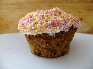 On Sunday Jo and Tabitha came to lunch. Tabitha (all of 15 months) is fussy about most food. However, she will always eat cake! I’m not surprised, her mother is the queen of cake. Much of our friendship has been based on cake and cooking. I went all the way to Africa to see Jo and we made cake and a roast dinner (’cause that’s what you do in sub Saharan Africa, it was very English!). Anyway, back to Sunday afternoon. I needed to make cake and I had all the ingredients for carrot cake and some left over frosting, however, a big cake isn’t very Tabitha friendly so cupcakes were the answer.