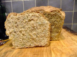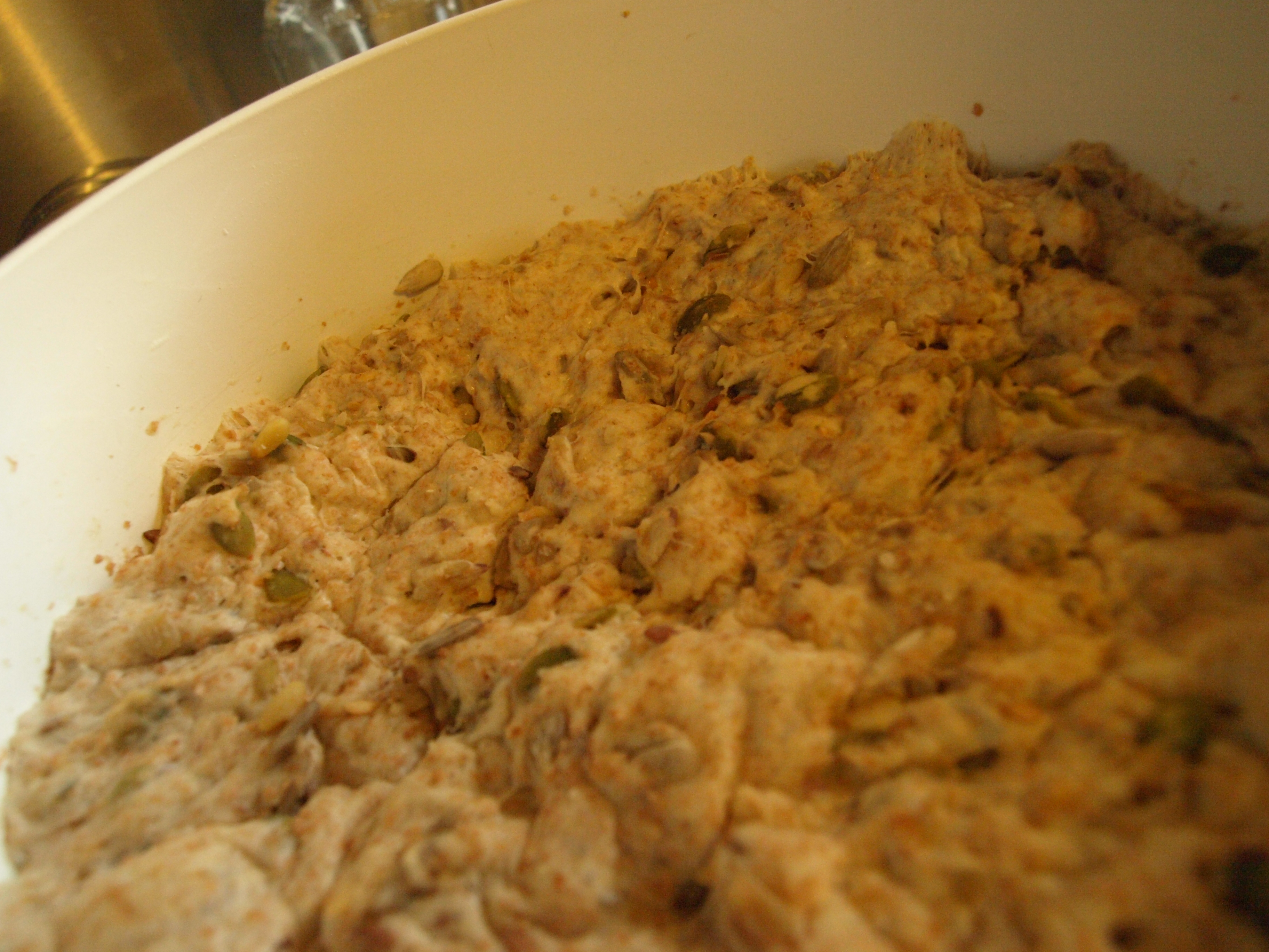 1) In a mixing bowl, mix flours, seeds, salt, sugar and yeast together.
