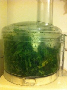 So take your kale, wash and stuff in the food processor