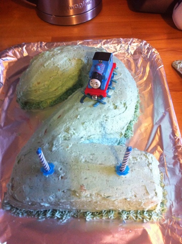 Birthday cake duty has rolled around again this year. Currently in the oven in the shape of a two is my standard easy birthday cake.