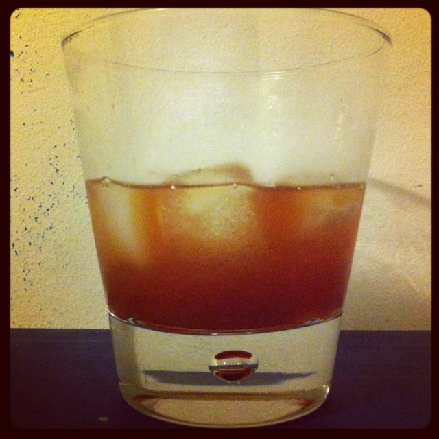 (I have been known when I can’t be arsed to do the washing up, I pour all the ingredients into the glass, stir hard, add ice and stir again!!)