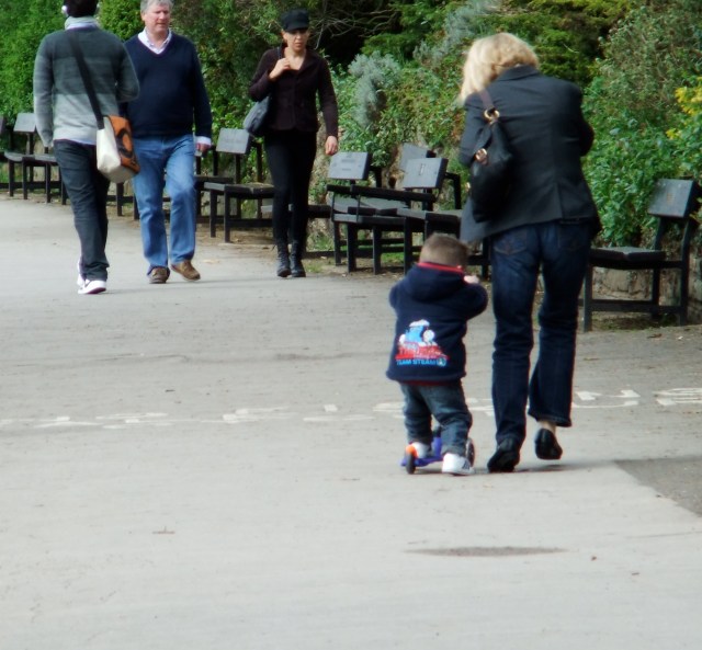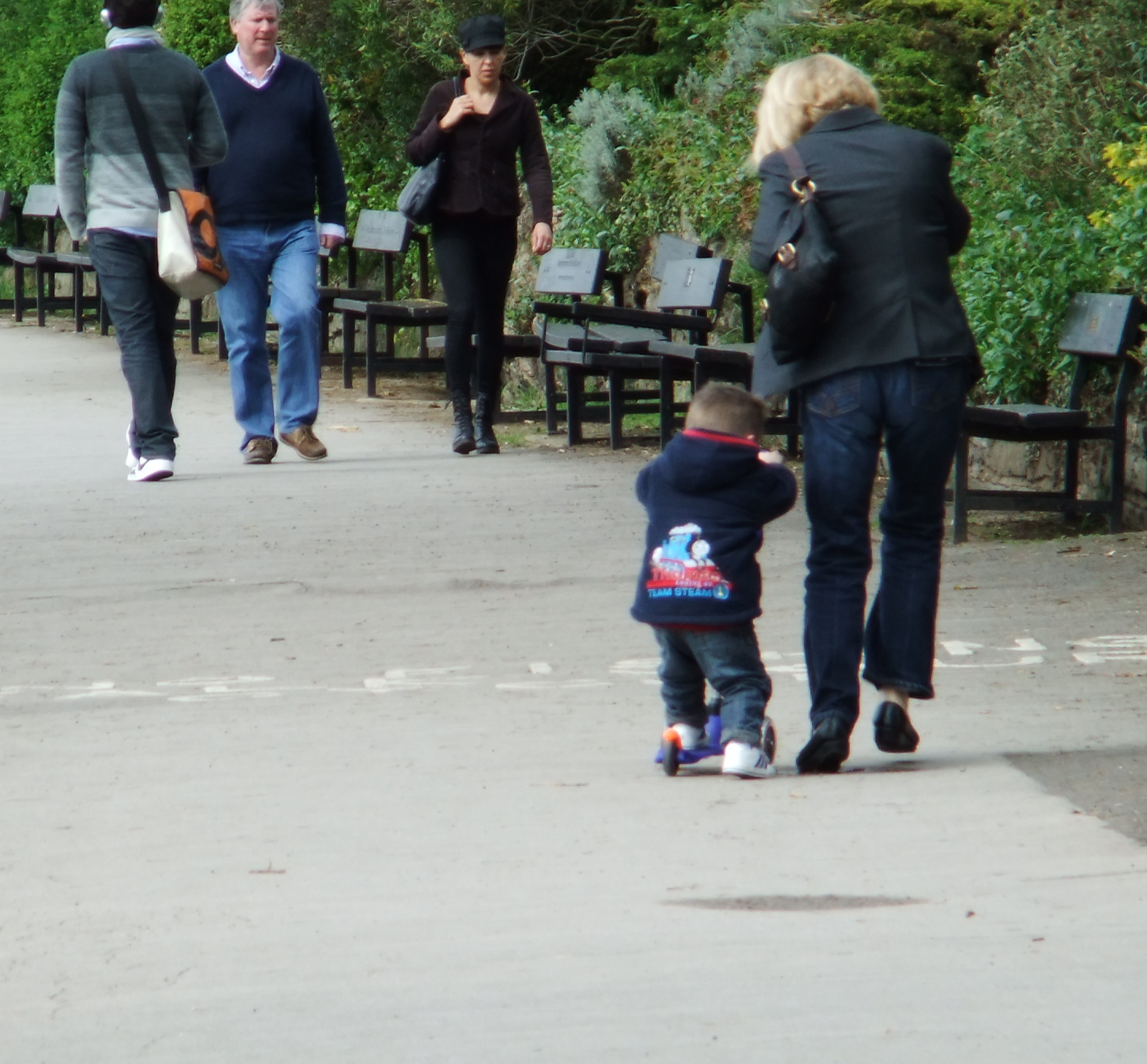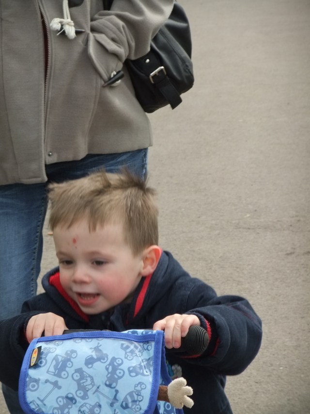 After lunch we went for a walk. Well everyone except Oli, who went for a scoot, with monkey in the bag hanging off the handles.