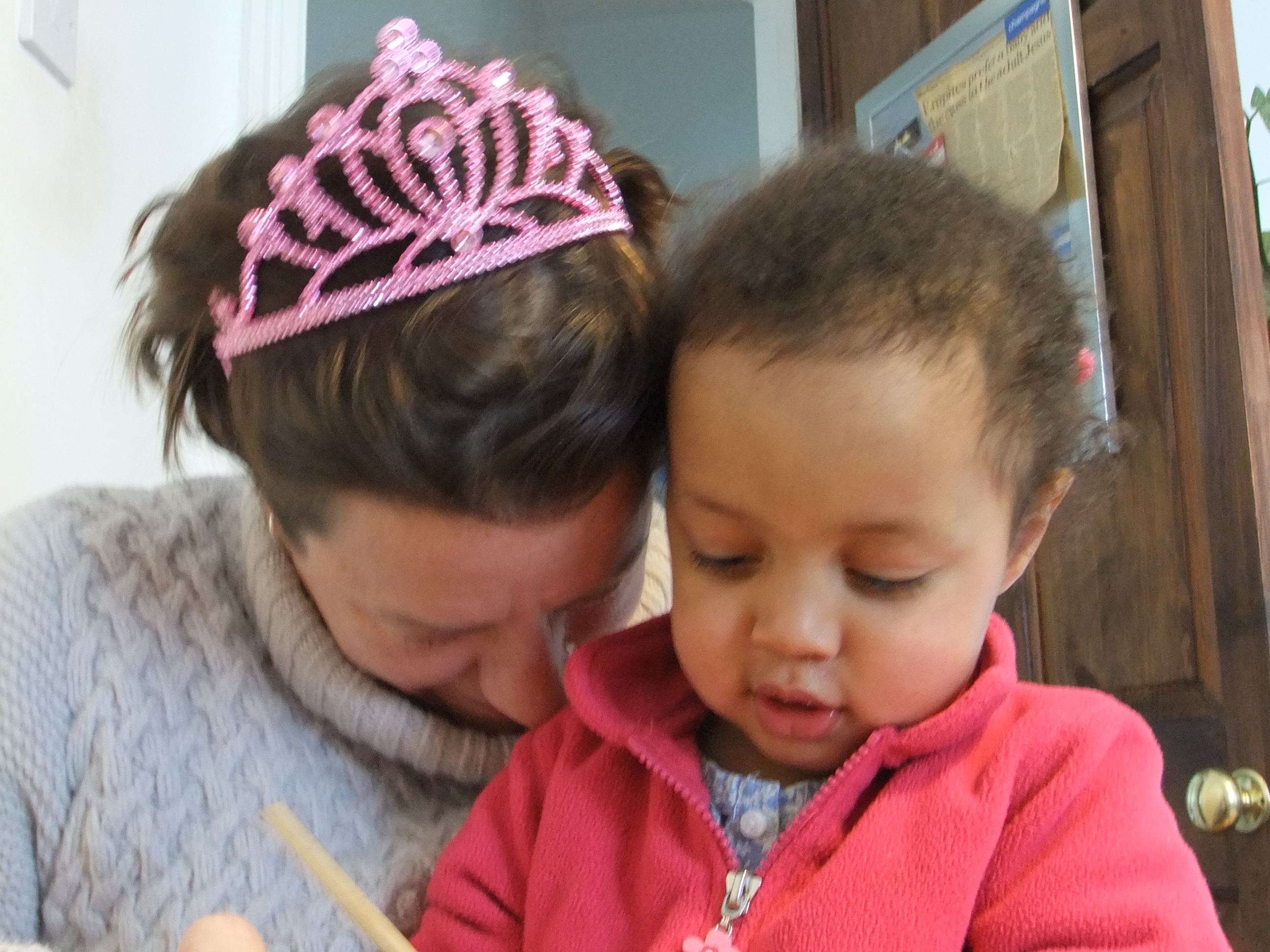 With Mummy and ‘my crown’ which she allowed Mummy to wear. Mummy was very keen on the crown and even wore it in the street!!