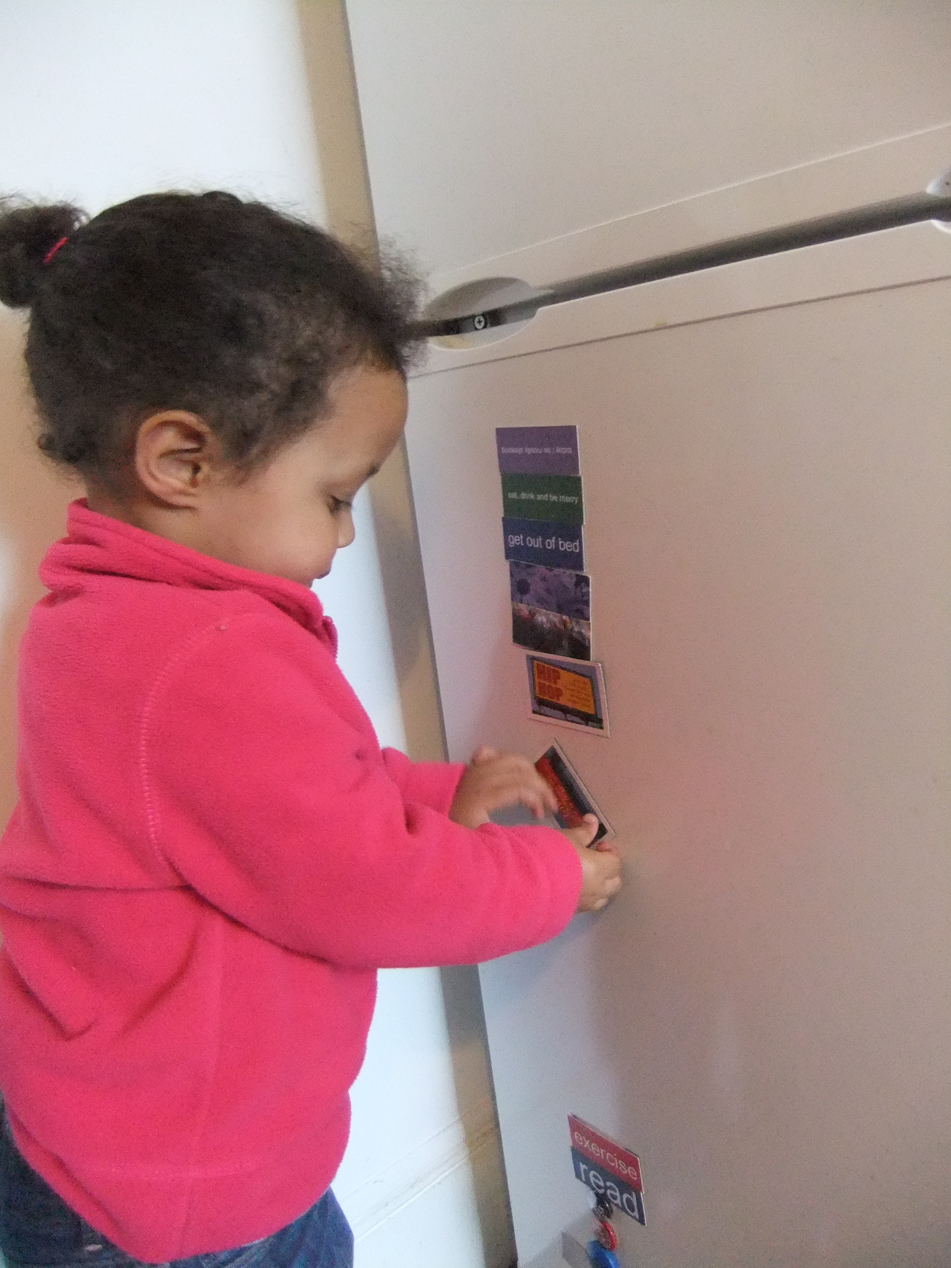 Re-arranging the magnets on the fridge..sorry “making a tower of flags”