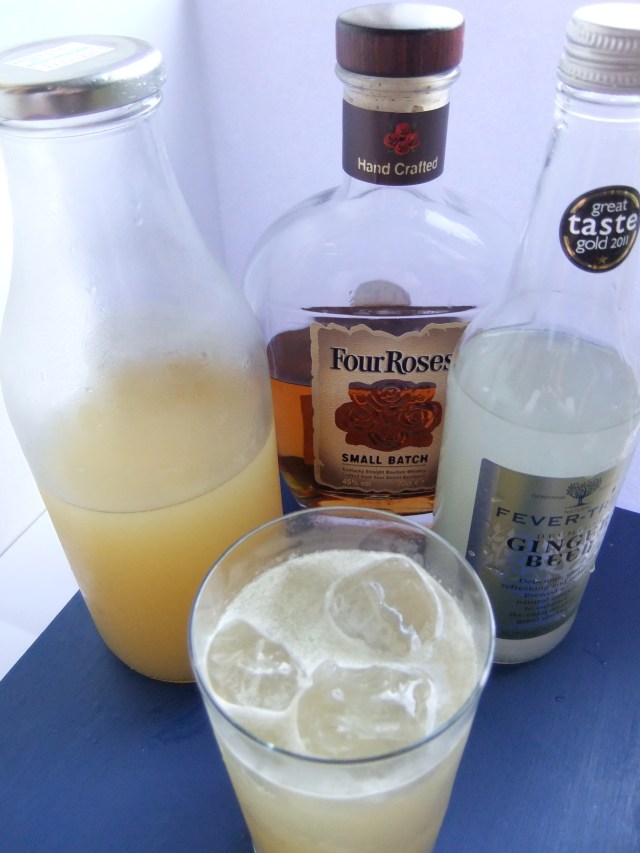 This came from Domestic Sluttery, I looked at it and filed it away as one to look at later. Then I was gifted some posh apple juice and it just seemed like the right thing to do. It’s a great long drink, the bourbon and apple juice blend well together with the lime juice and ginger beer adding tartness and a lovely fiery kick.