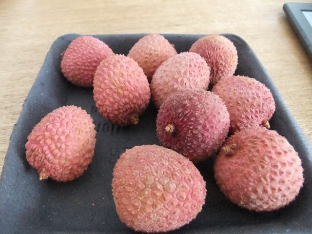 Lychees. My favourite fruit, despite the no fruit after lunch rule I’m trying to impose, they were just too good to resist!