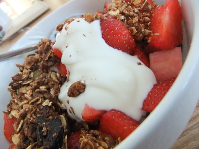 My favourite breakfast at the moment is an apple, some berries, some greek yogurt and granola.