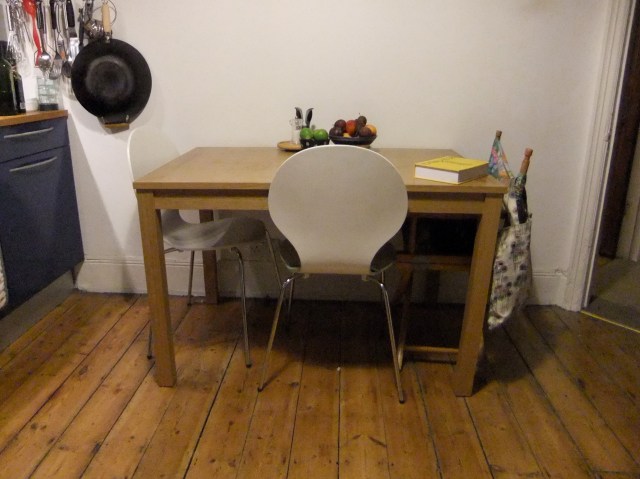 As it turns out I didn’t have as much furniture as I thought I did, I didn’t have a table for the kitchen, a sofa or a wardrobe and I needed some shelves for all the books. I did have kitchen chairs though. Ok so they were the folding Ikea chairs and ok they weren’t the most comfortable chairs in the world but they would do and I was determined that I wouldn’t just buy stuff for the sake of having it, I would take my time and buy furniture that was useful and beautiful and fit my style. So stop gap chairs were just fine.