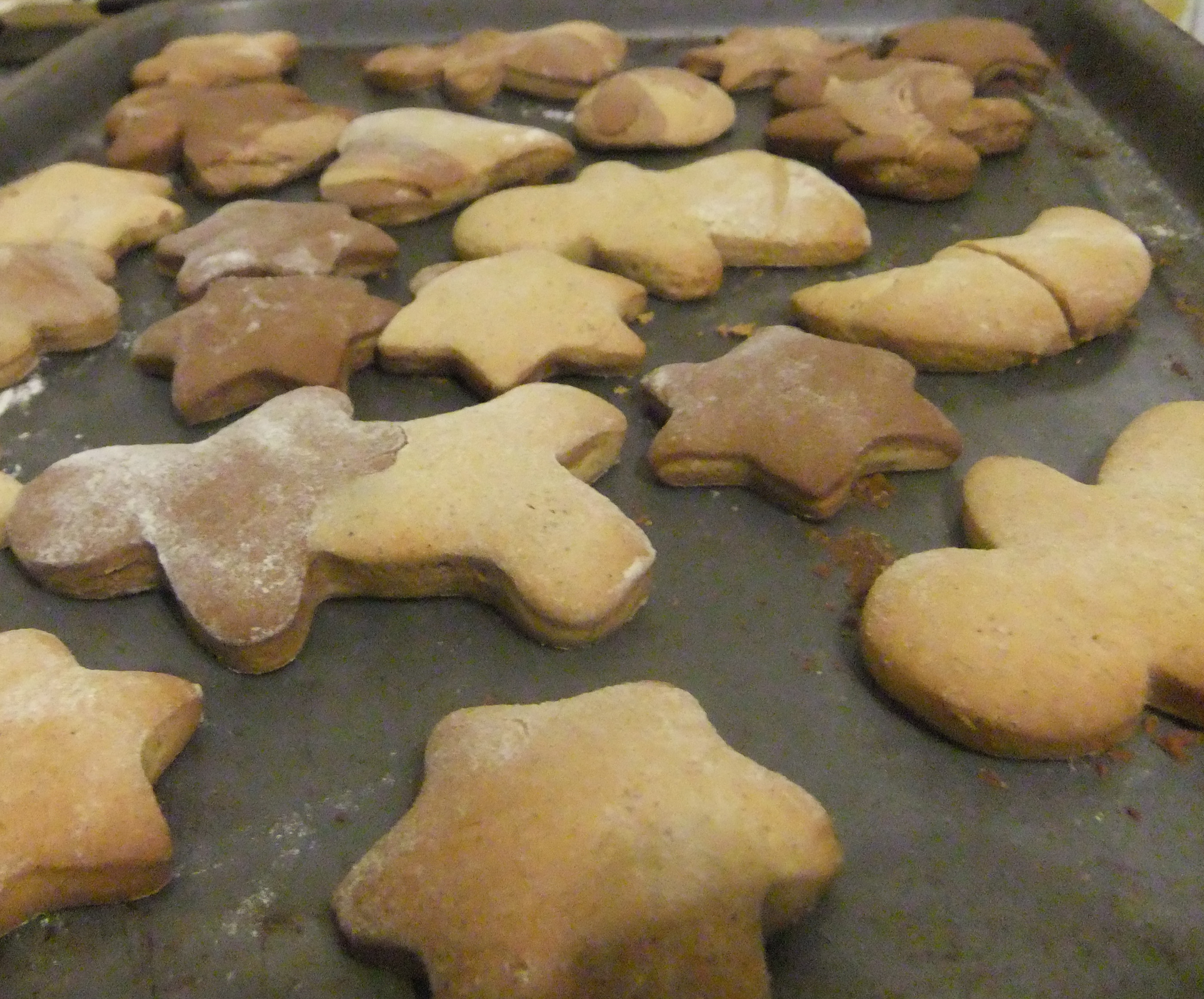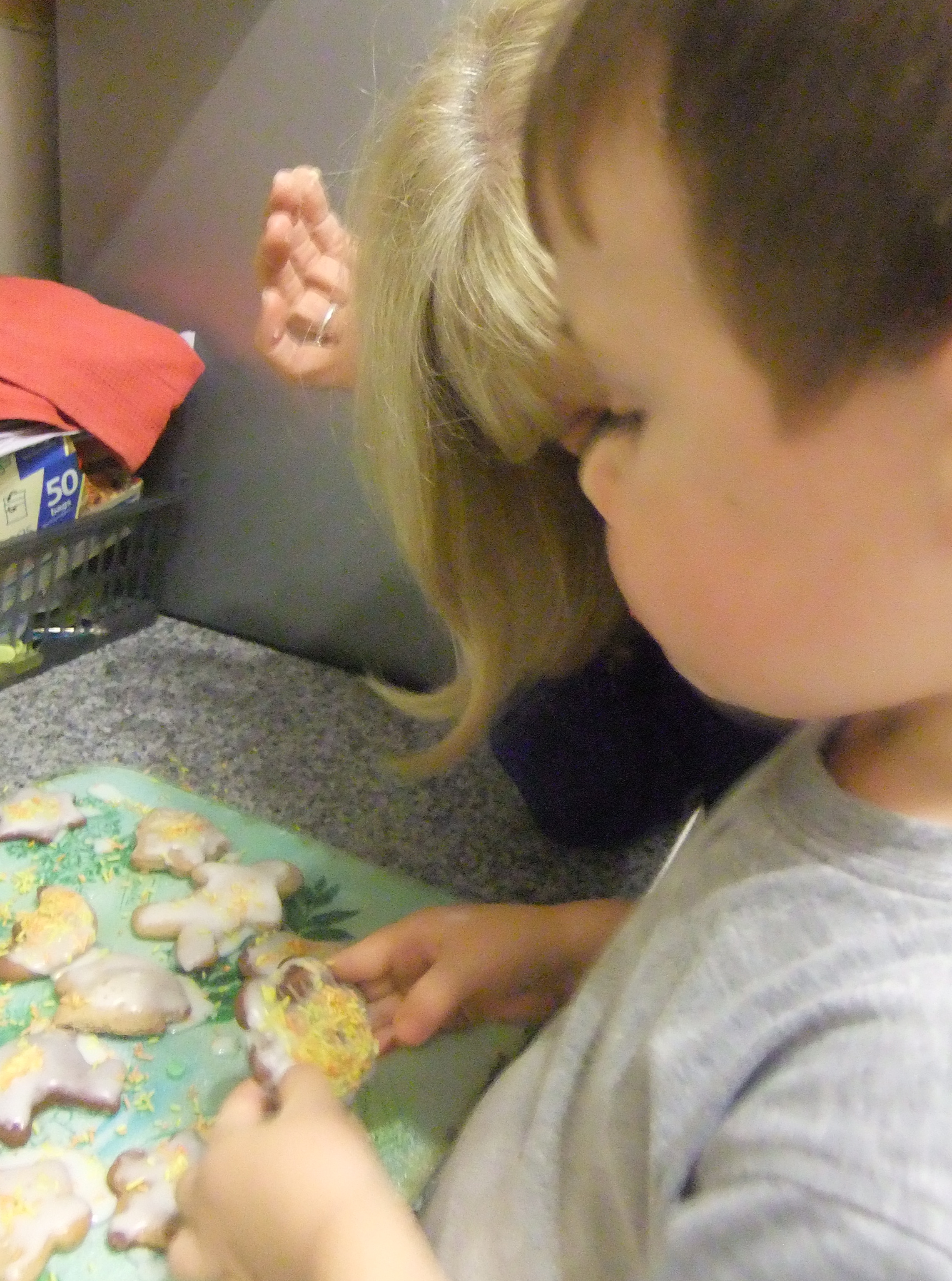 Even if you don’t have a 2 year old to entertain, these are really simple and the dough can be frozen. They are from How to Eat (my favourite Nigella cookbook) and she suggests that you could use them to decorate the Christmas tree. For the chocolate version leave out the cinnamon and use 25g of cocoa and 175g of flour.