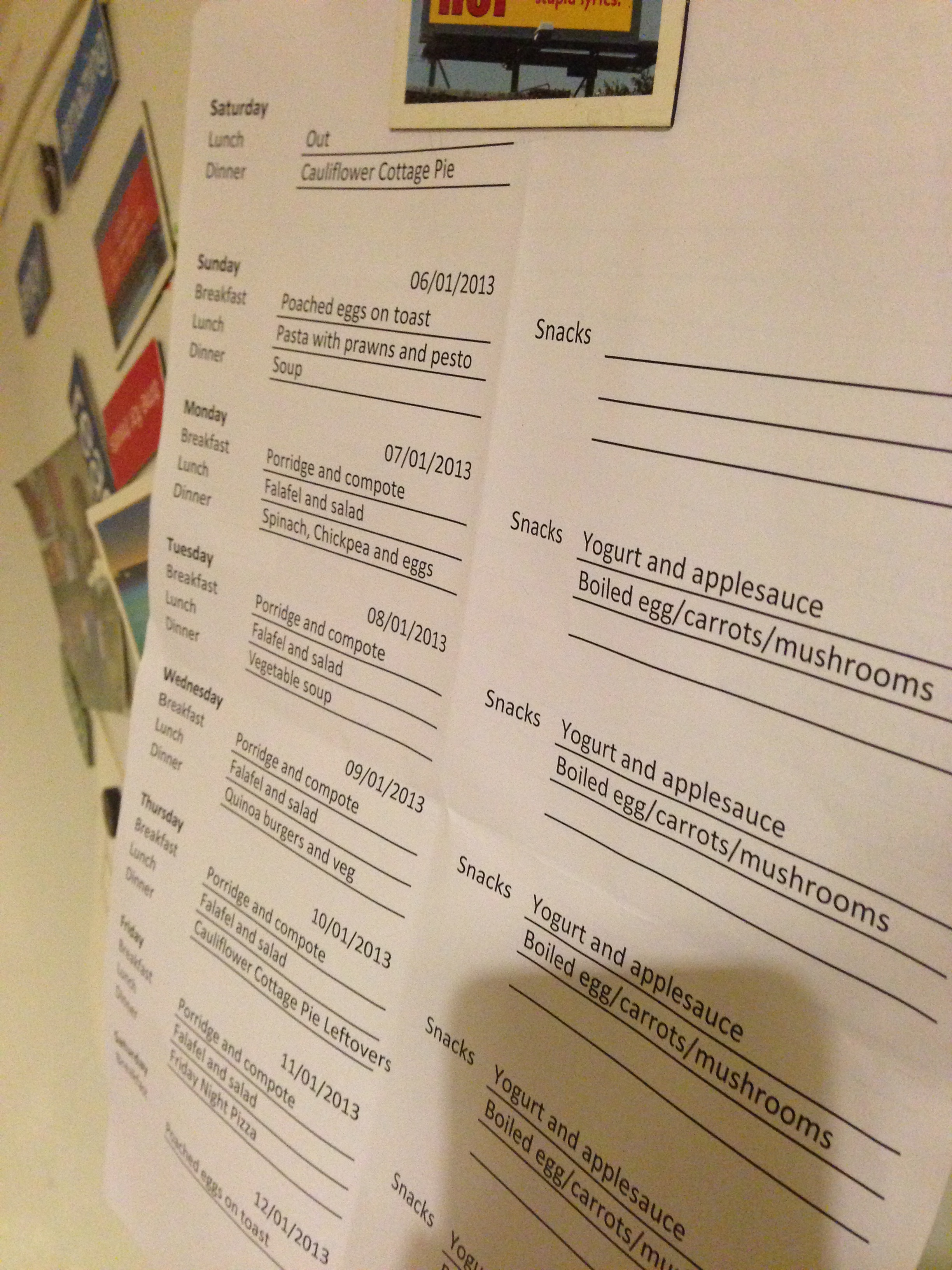 I started to really seriously menu plan a couple of months ago, I do love a spreadsheet! Although December was a bit of a free for all, I’m really glad to get back to it. I plan breakfast, lunch, dinner and snacks, making sure that I’m ultilising what I have in the freezer and cupboards and plan a shopping list and weekly ‘task’ list for food. I pin the list to the fridge and knowing what I’m eating stops any mindless snacking, controls my budget and there’s always enough leeway in the plan to change if I fancy something different or end up not eating a meal, which tends to happen at the weekend.