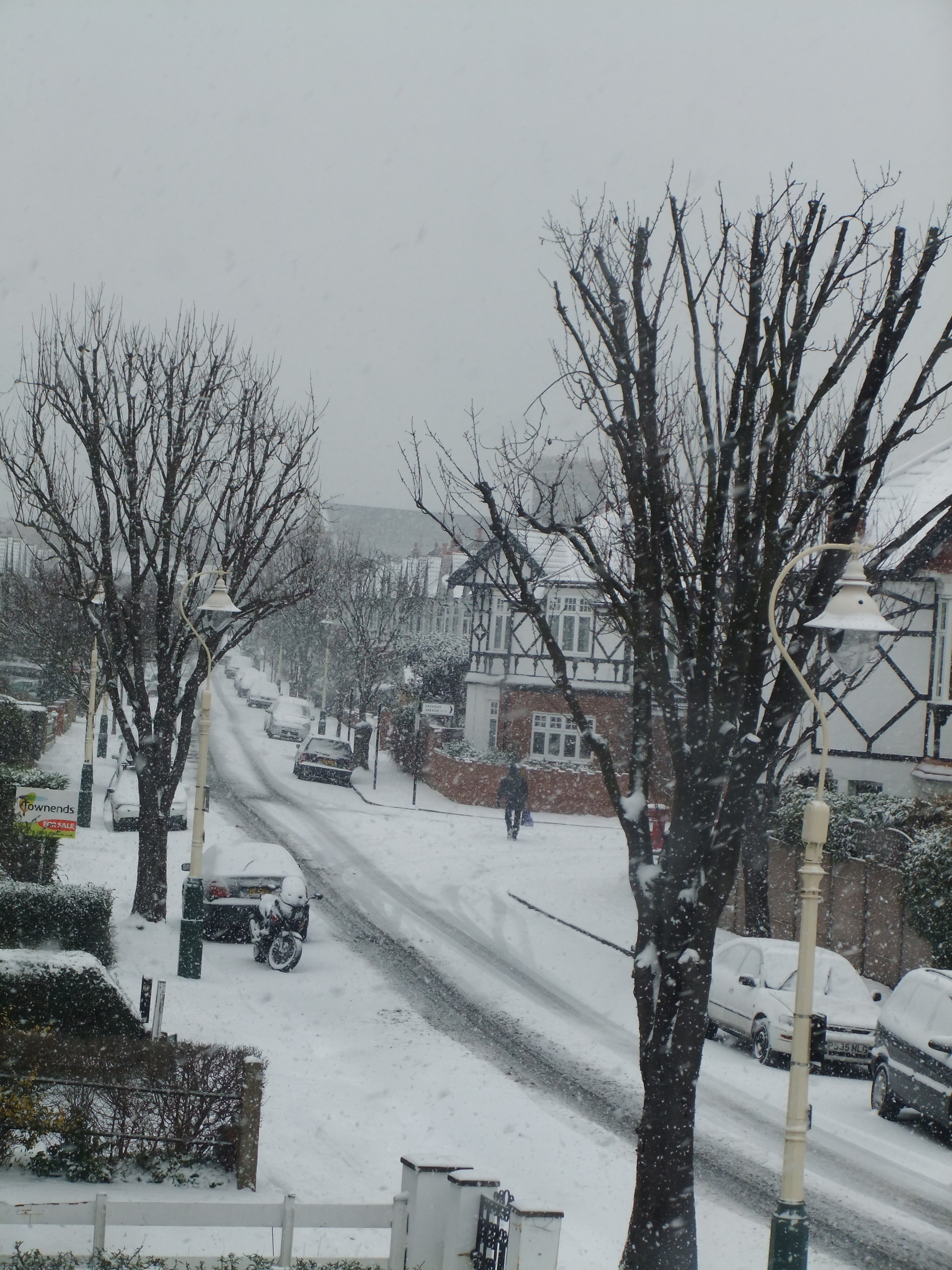 On Sunday morning, we woke up to find that it was snowing again. After breakfast, Ma went off and I spent the morning lying about reading. It was still snowing at 3pm when I ventured out for a walk in the park.