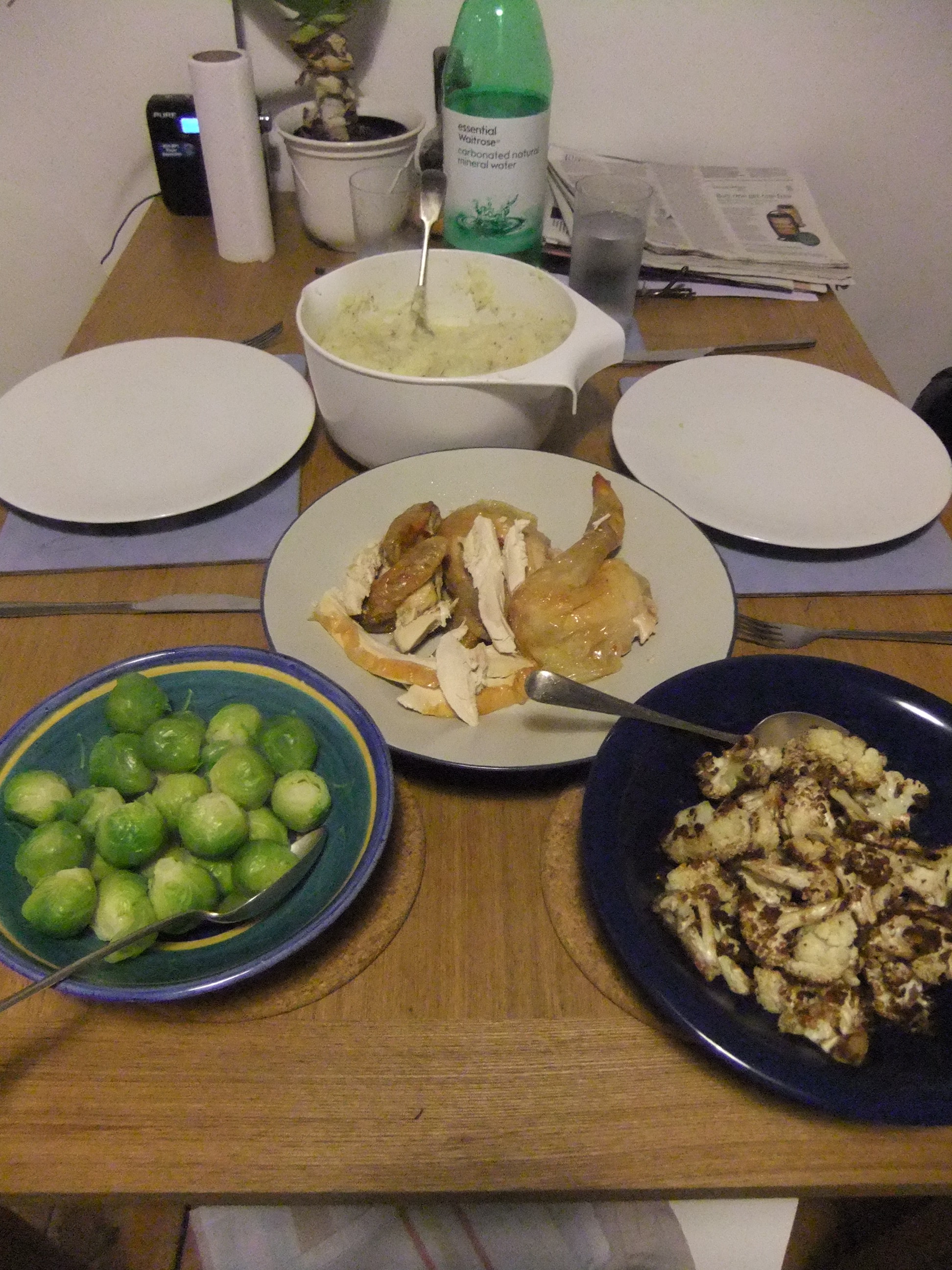 Ma arrived on Saturday night and we ate dinner (roast chicken, mash, brussel sprouts and roasted cauliflower), watched The History Boys and listened to Brain of Britain. It was very rock and roll…