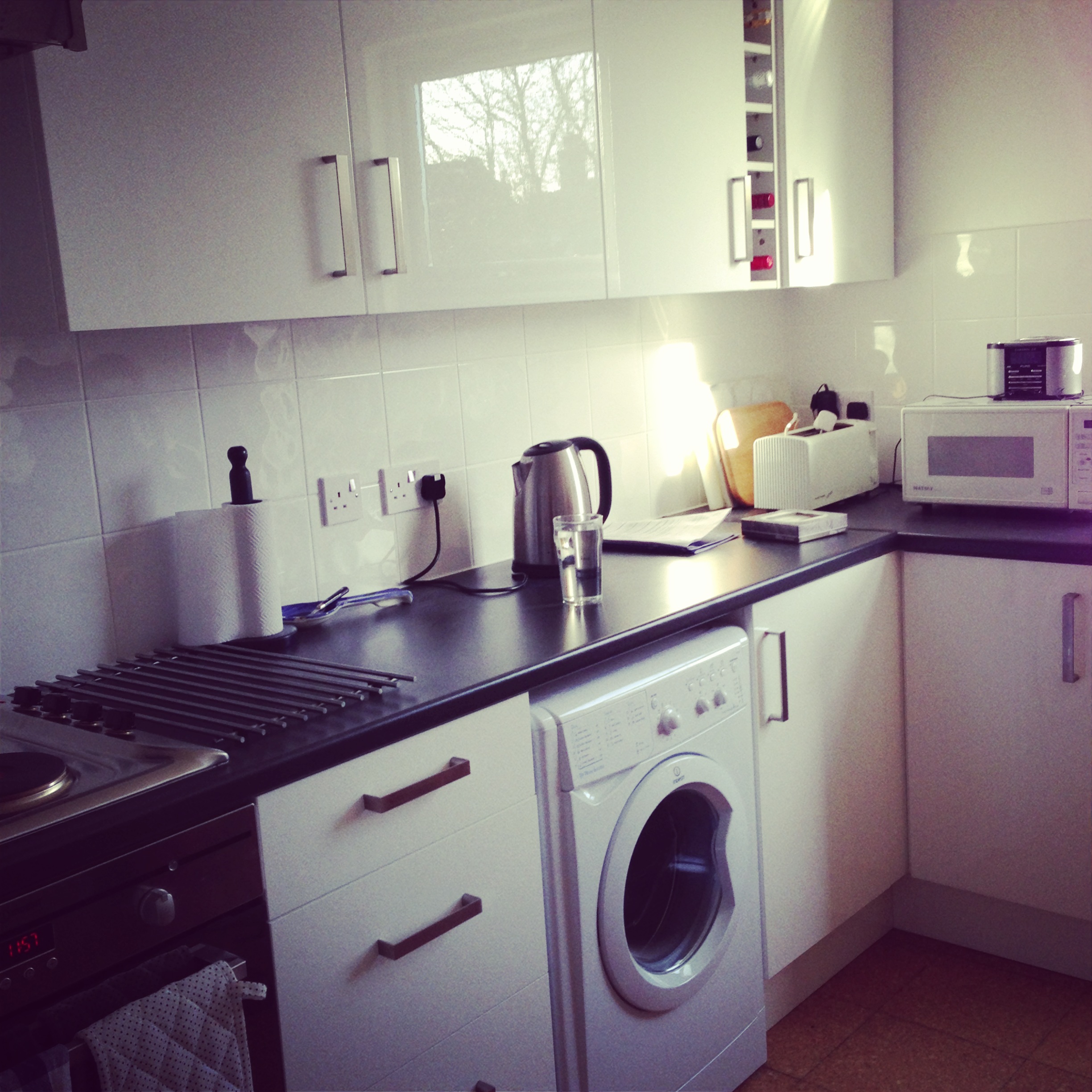 The kitchen is amazing and looks so much bigger, it’s also a great relief not to be attacked by kitchen doors falling on my head when I try to open them!  Ma and I took a walk to the supermarket to fill her giant new fridge freezer! Then Christelle came over and we moved the old fridge out of Ma’s living room where it’s been living for the last couple of weeks and into position for being picked up in the week. Then we all headed into Kingston to buy a new kettle, toaster and bin for the new kitchen. Floating around John Lewis looking at kettles and stuff is a nice relaxing time for me. I like shopping that doesn’t involve changing rooms! However, Christelle and Ma are not so keen and we went to lunch and then walked down by the river to pick up the car Ma had booked.