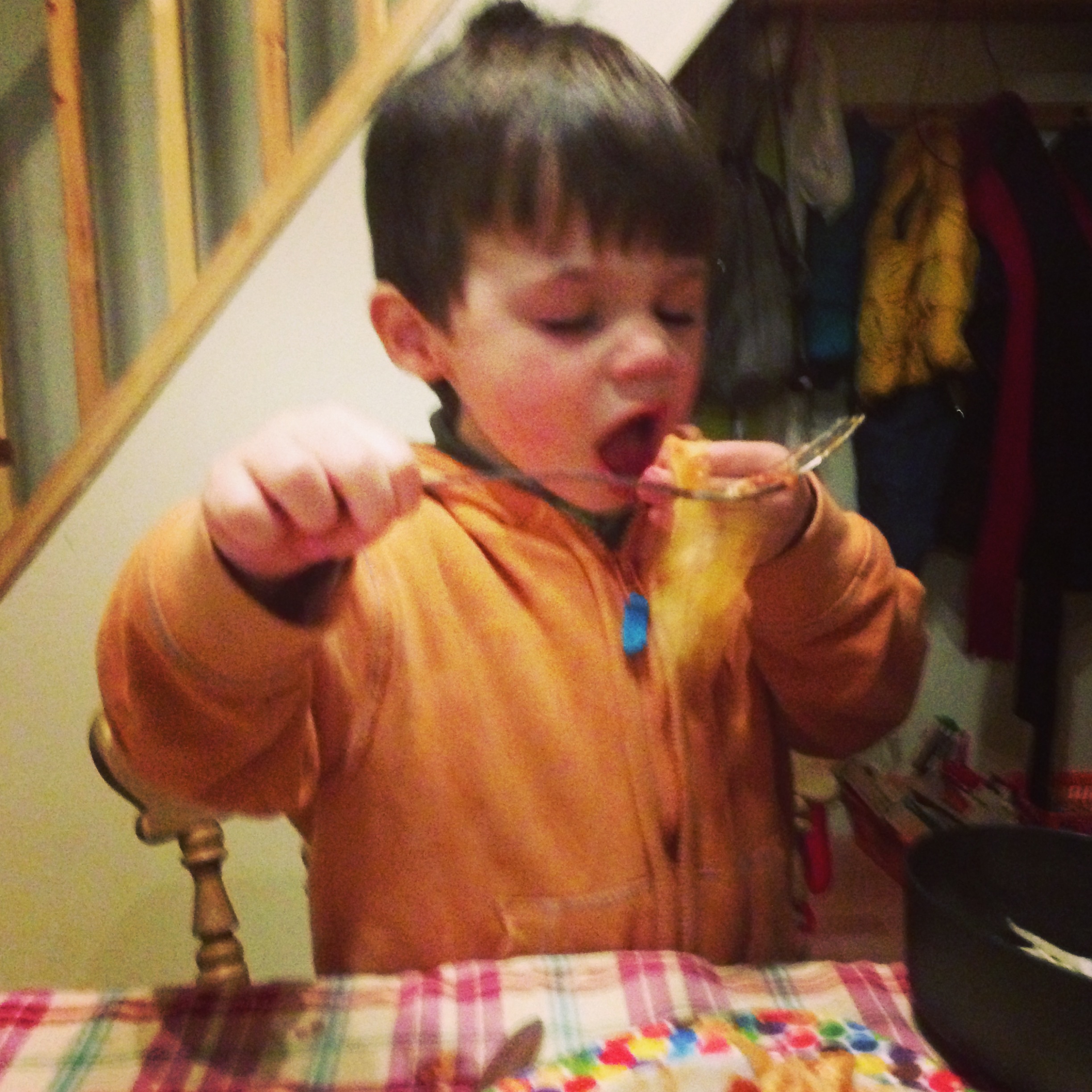 He calmed down a bit, was presented with his choices, chose and then went mental again! After some time, in the street no less, I gave him two options, walk or be carried. More wailing and I picked him up and carried him to the end of the street. It was like a reset. He was fine for the rest of the evening. We walked to the shops, cooked dinner, Oli ‘helped’
