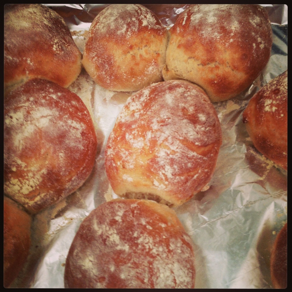 The taste is amazing and on Sunday when I was dying of the hangover, these were perfect. They would be perfect burger or bacon rolls or sandwich rolls for lunch. The recipe made me 15 rolls, I weighed the dough at about 100g a roll rather than the 150g suggested in the recipe.