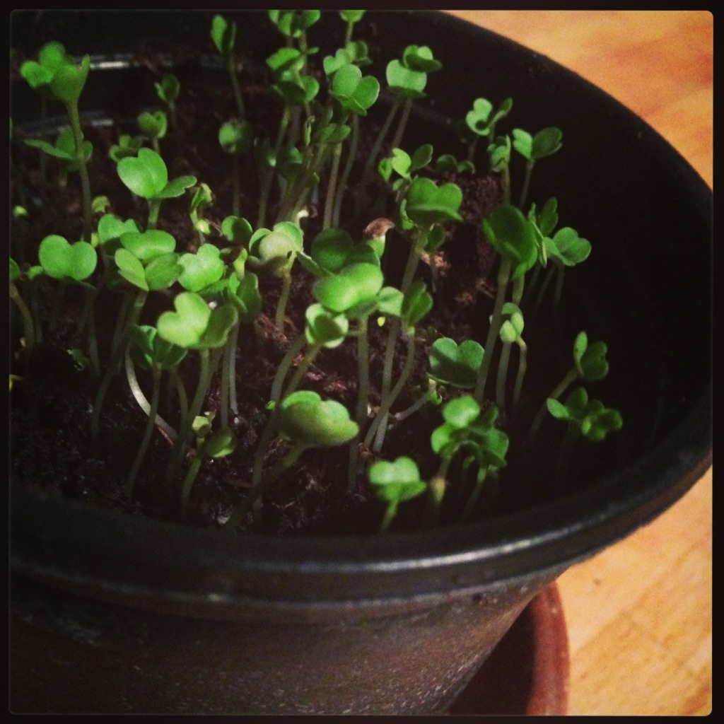 Two weeks later, I filled another window box soil and taking advice from H (who was very happy to give me all the wisdom she gained last year) put carrot and radish seeds as well as mixed salad leaves and spinach. There’s a bit more room for some more salad leaves in a couple of weeks time.