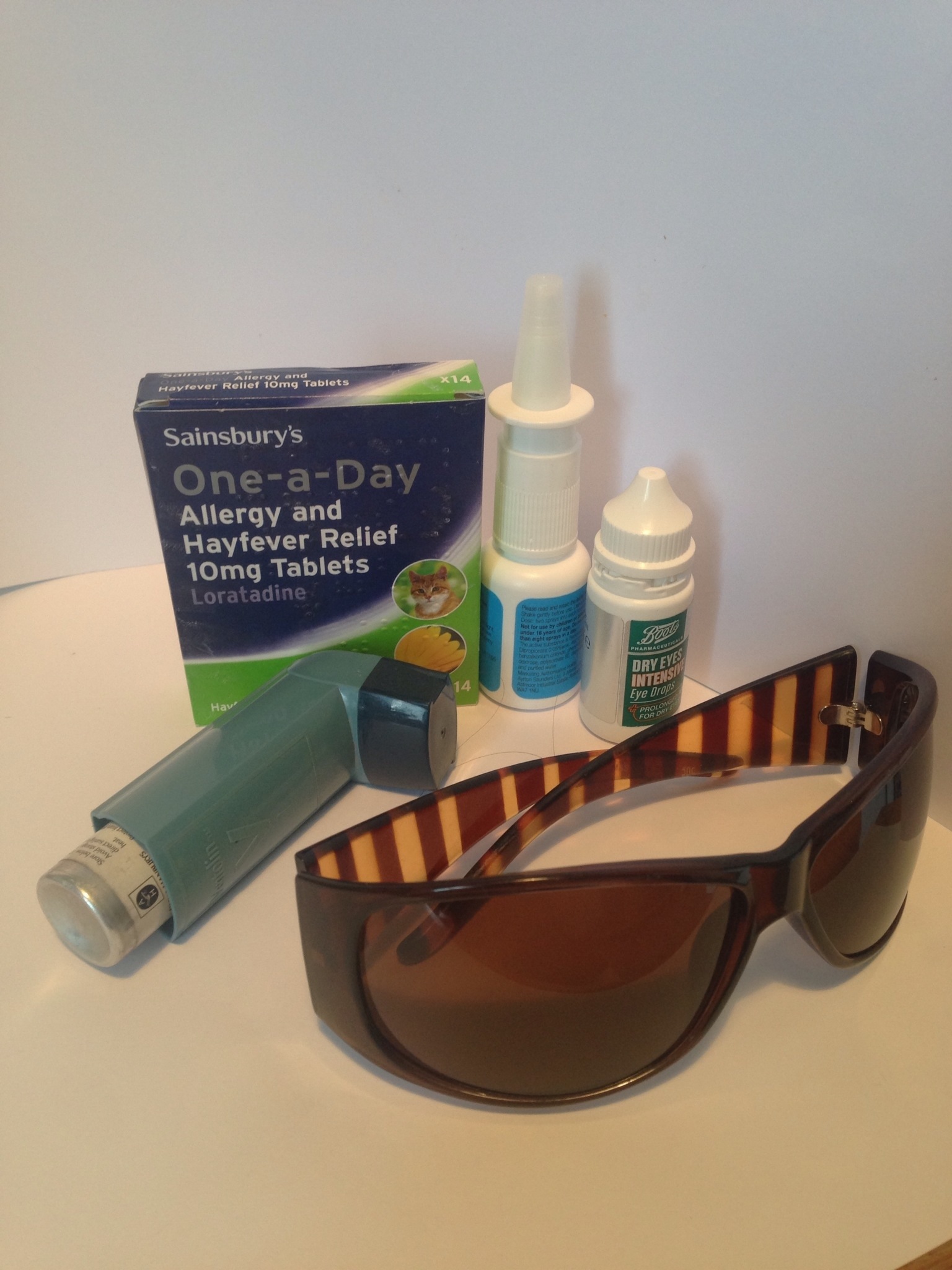 4) Anti histamines, nasal spray, eye drops, inhaler, contact lenses and sunglasses.