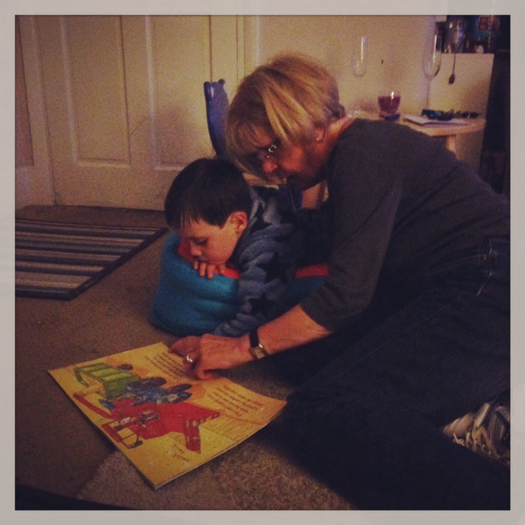 We had dinner together and then Ben and Lu headed out to their thing and we put Oli to bed. Ol was mostly ok, upset when his Mummy and Daddy left but went to bed ok. Three and a half hours later he woke up and had a cuddle with Grandma!