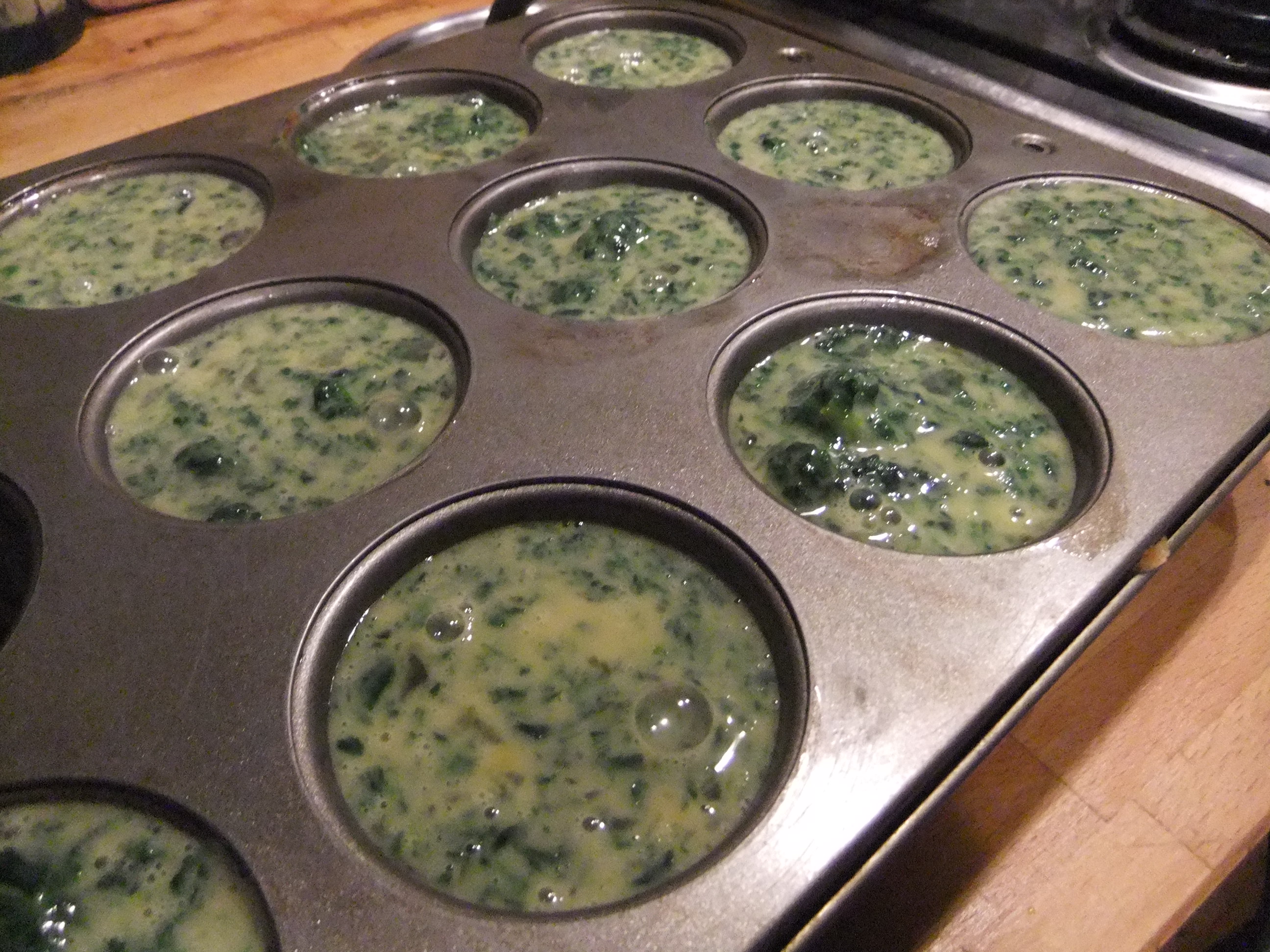 5. Pour the egg and spinach mixture into the muffin cups and bake for 20 to 25 minutes, until cooked through (my oven runs hot so don’t worry if it takes a bit longer!)