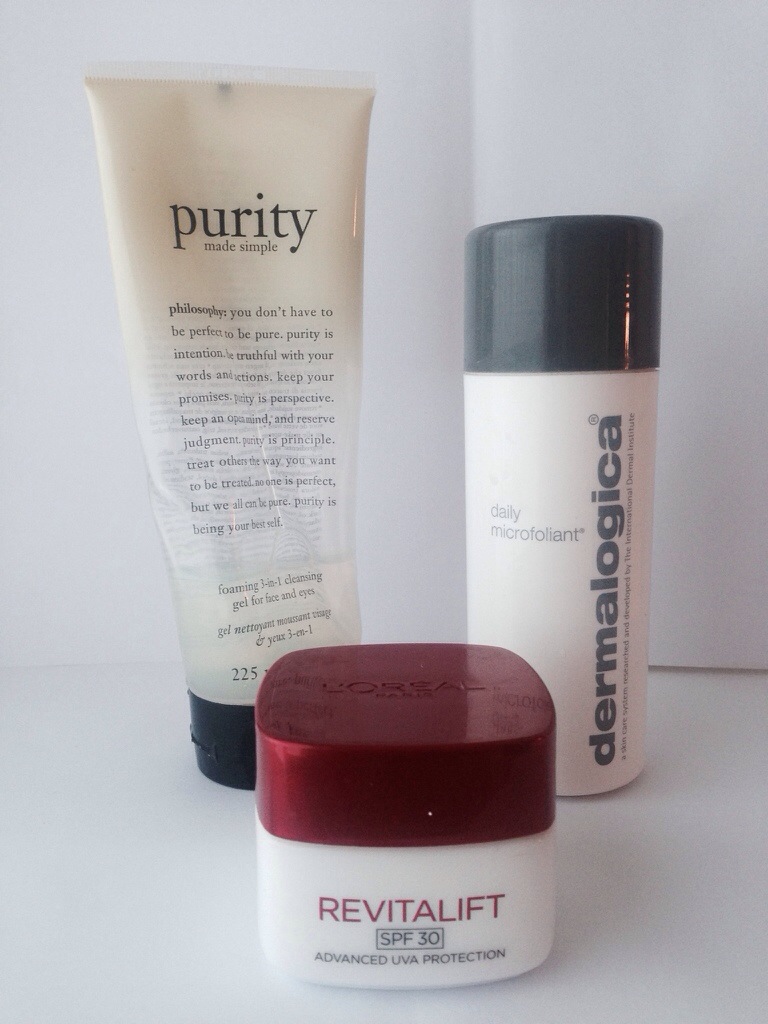 I wash my face with a gel wash. At the moment it’s Philosophy’s Purity Made Simple Foaming Cleanser. It wasn’t cheap but I’ve had the same tube since September and it makes my skin feel clean but not tight.