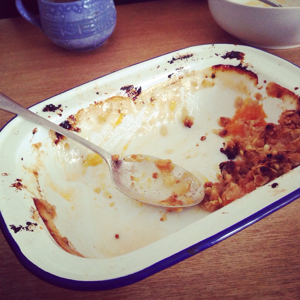 Apricot crisp and yoghurt for a couple of days and toast and eggs for the others.