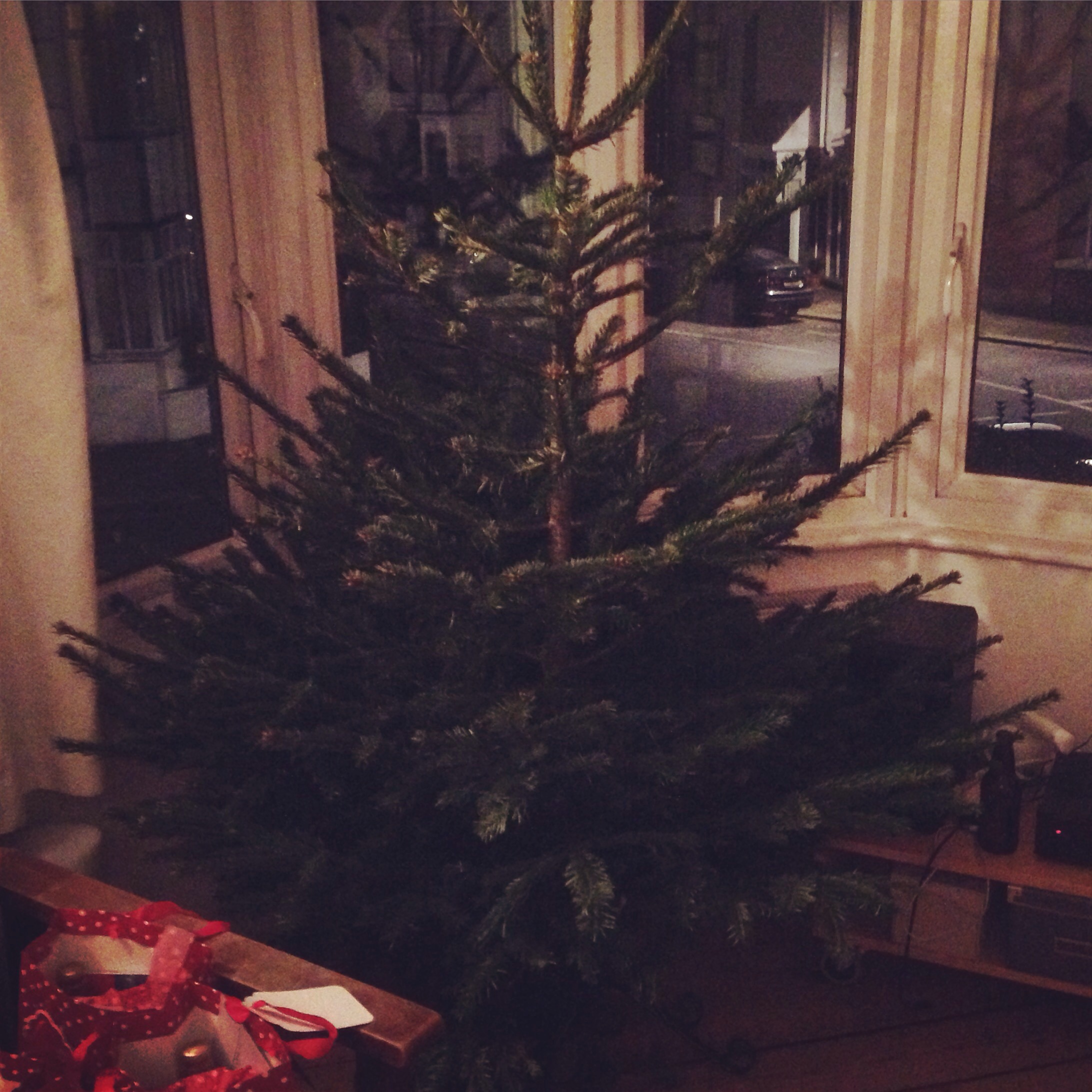 I didn’t mean to but I bought a Christmas tree on Sunday, I asked the Christmas tree man if he’d be around on Tuesday and he said no but offered to deliver the one I was thinking about buying, on Sunday night, (and refused to take the cash until he’d come with the tree!). So I rearranged the living room to accommodate the tree, although it will remain undecorated until Christmas Eve,