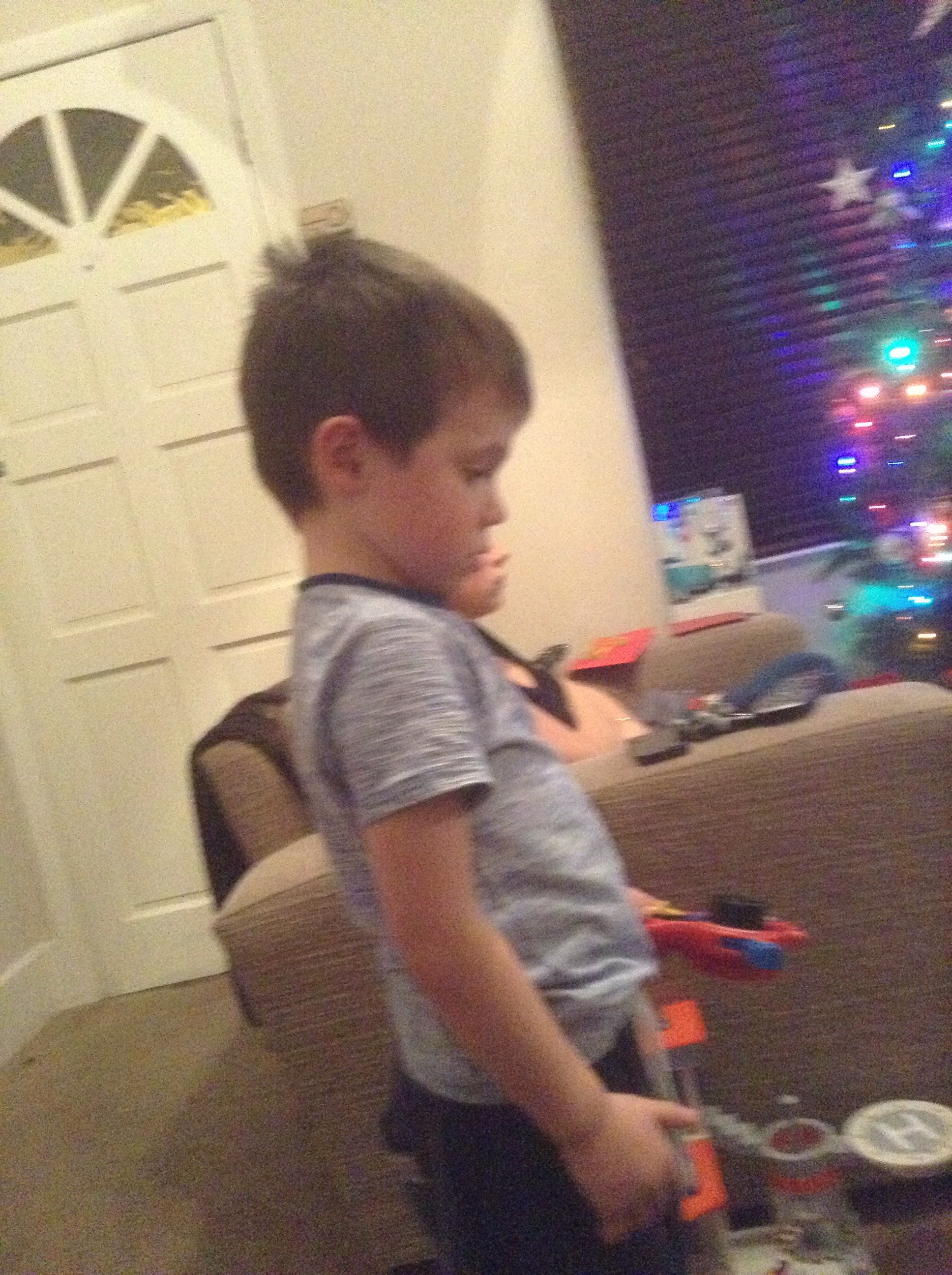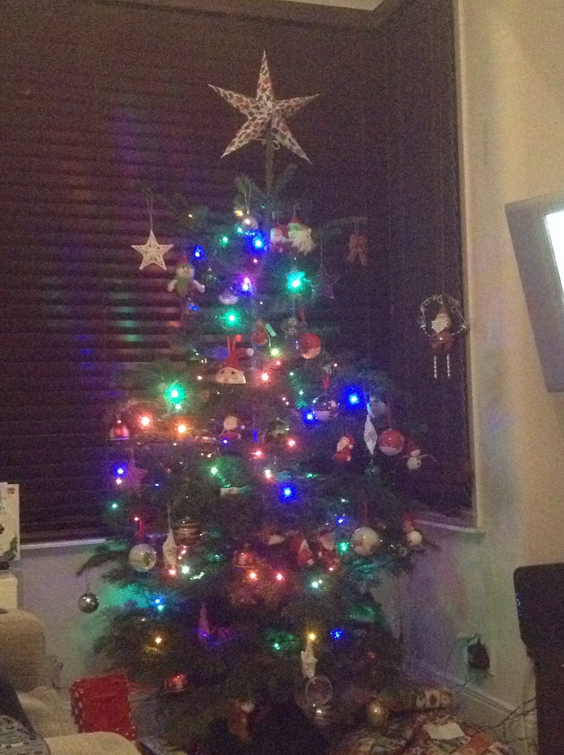 Ban and Laura’s tree. There’s been dinner and elf racing and all sorts of shenanigans. Mostly caused by this boy…