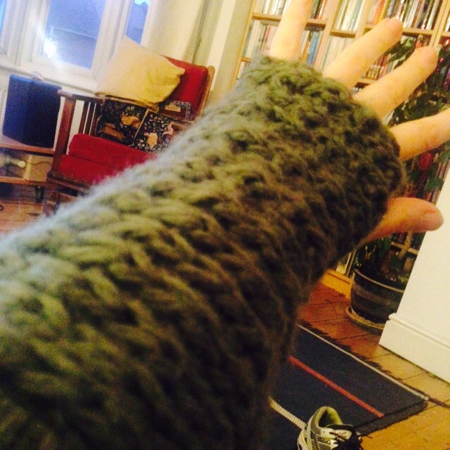 I’ve blogged about the smaller wristwarmers that I’ve made as Christmas presents but after knitting Ma and Sarah scarves for Christmas this year. I decided to use the same wool to make some bigger ones for me because I’m incapable of hanging onto a pair of gloves!