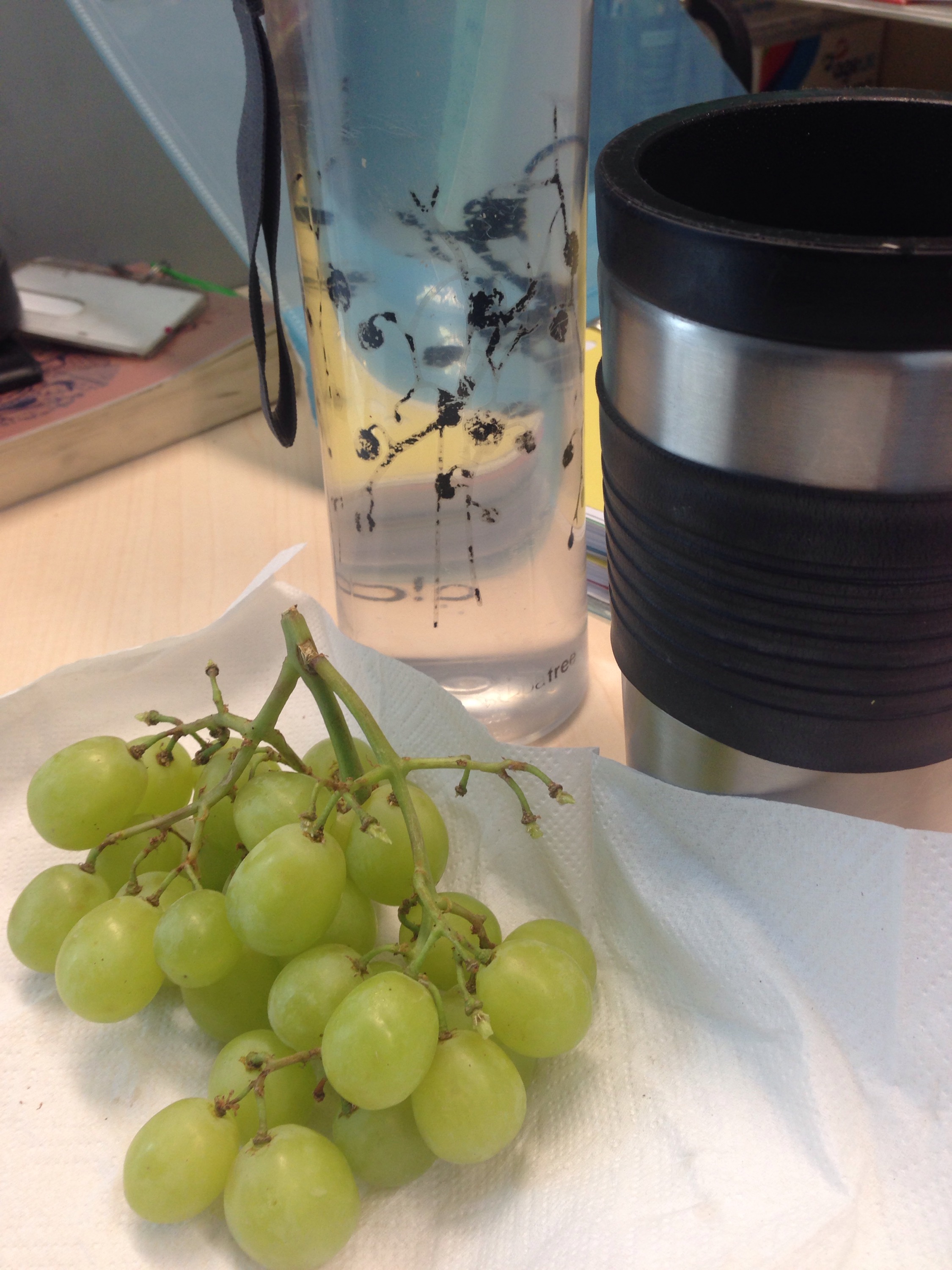 Mid-morning, I re-upped my tea and water and ate some grapes.