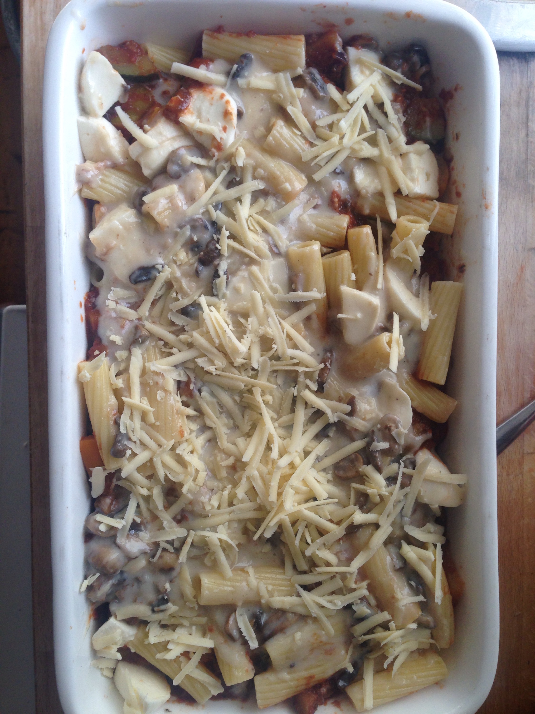 Over time my pasta bake has become vegetarian and lasagne like, I could actually just make it with lasagne sheets but this feels easier…
