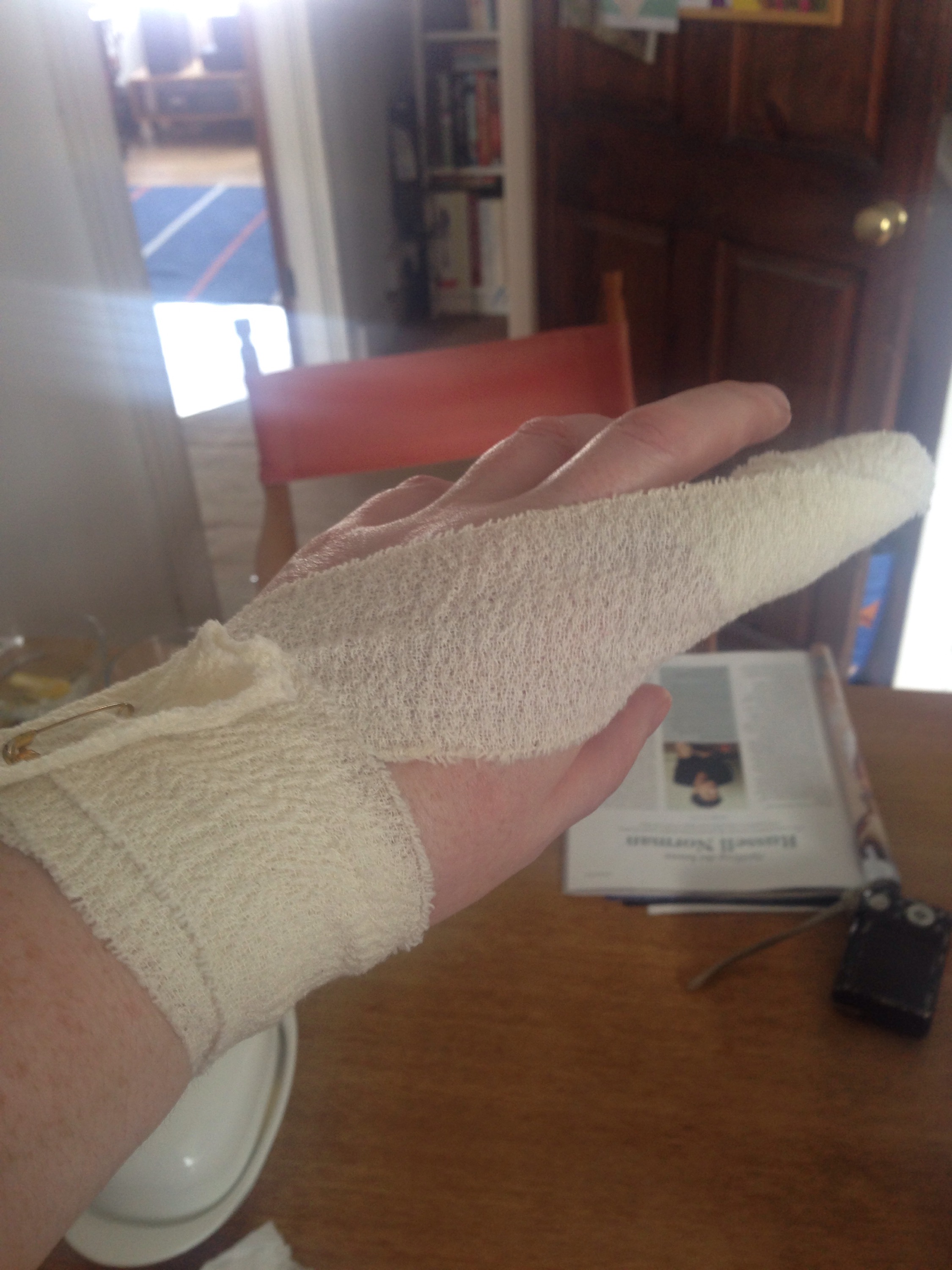 On Sunday I managed to cut myself and didn’t have any plasters, so behold the most OTT bandage in the history of bandaging (but beautifully done by Ma!)
