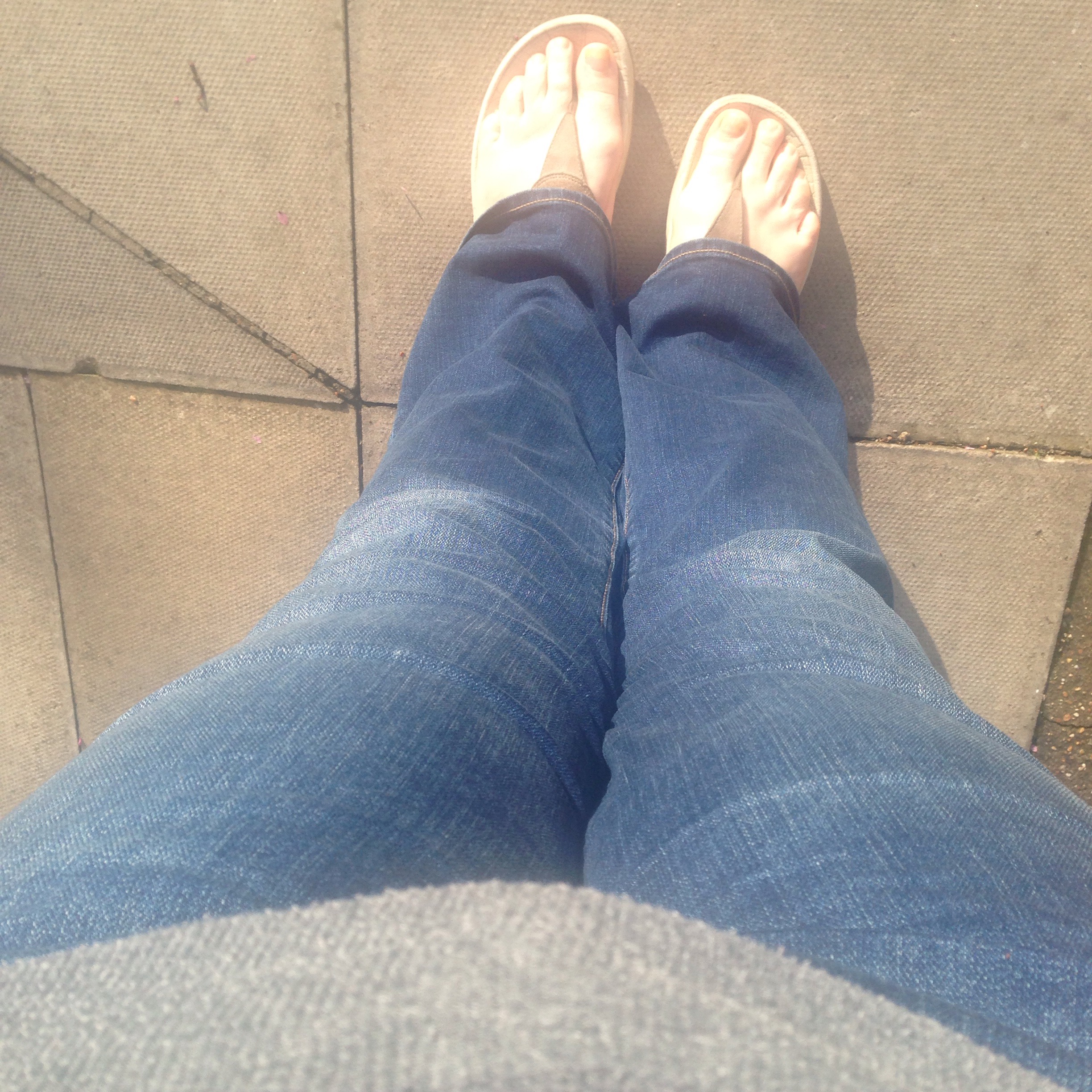 By Friday, I was so ready for the week to be done! Thank goodness for dress down Fridays, I got to wear my new jeans (belated Christmas present from Ma) that fit perfectly and are long enough. I am going to wear these to death! The photo was taken on Sunday when I popped out for pain au raisin and couldn’t face actual shoes!