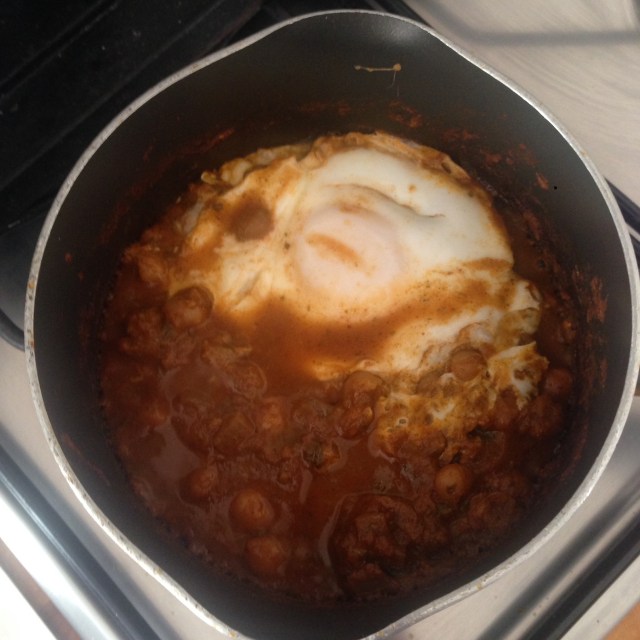Tuesday was more chana masala this time heated up with an egg cooked in it like shakshuka.