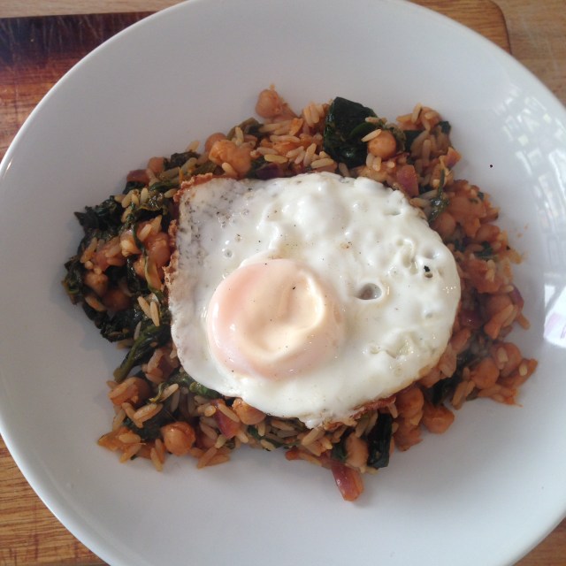 There were more chickpeas on Wednesday night, this time in a Spinach and Chickpea Pilaf, with an egg because I like them!