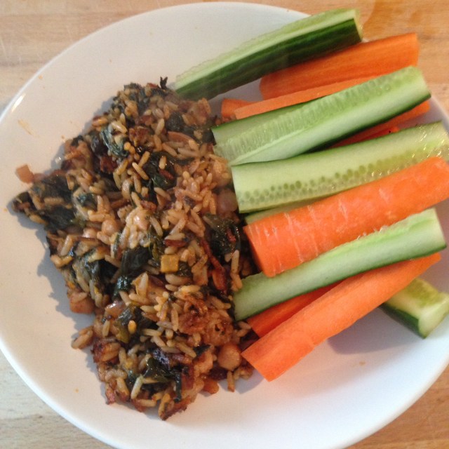 On Thursday, I had a plan to eat something else but I was tired and there was loads of pilaf left so some of that and some carrot and cucumber.