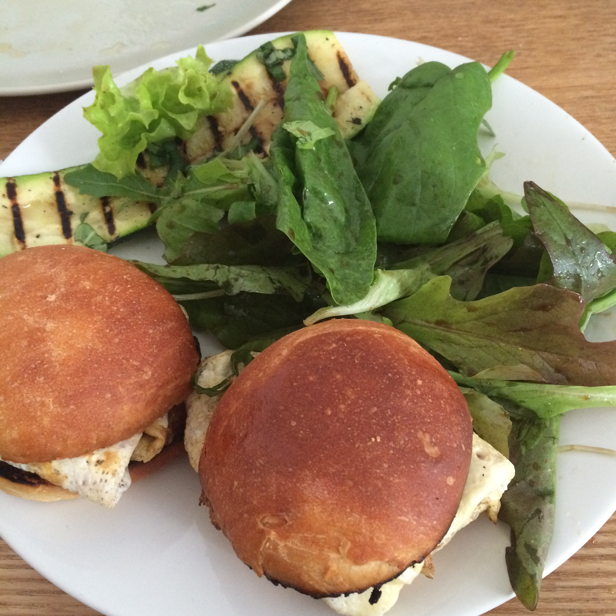 Wednesday Ma met me after work and we had egg rolls, grilled courgettes and salad.