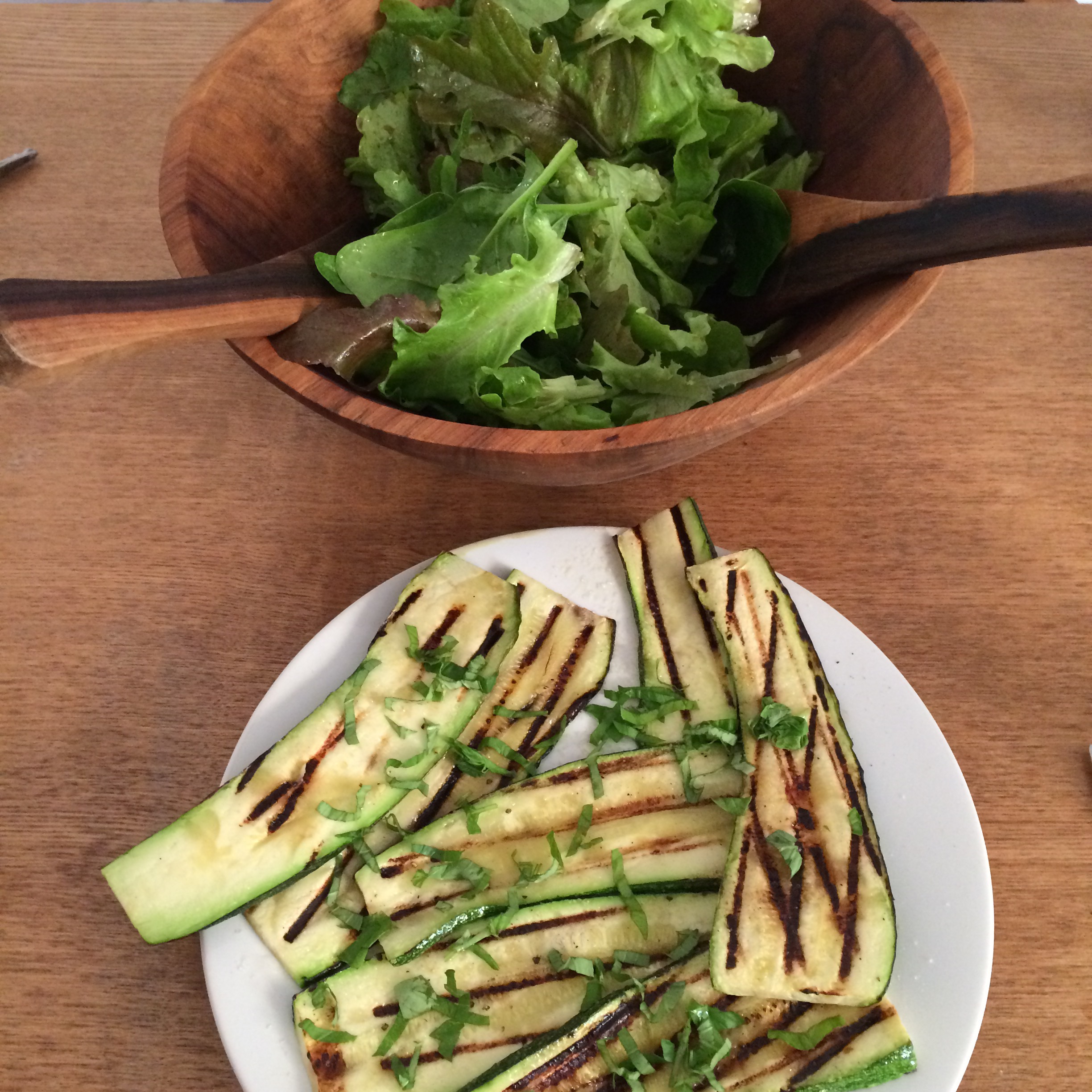 Monday’s dinner was chana masala which I was going to eat with flatbread but it was too hot, so I grilled a courgette and had more allotment salad.