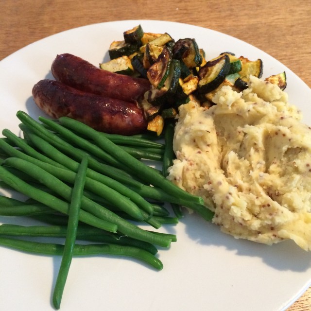 Sunday dinner was all (except for the sausages) from the allotment…potatoes not grown by me!