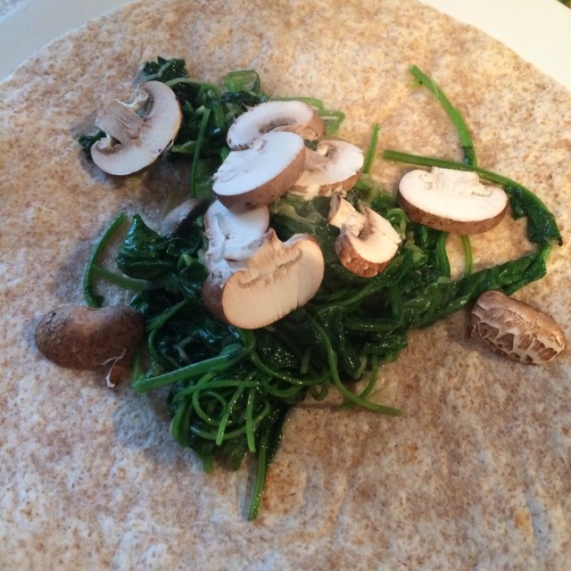 Tuesday was stir fried greens with mushrooms on a tortilla