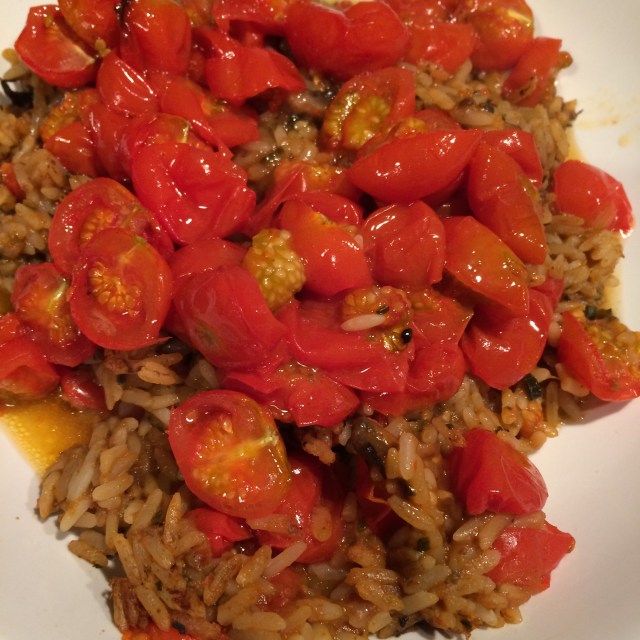 On Wednesday I managed to get it together and have yoghurt and peaches for breakfast and rice and a vegetable sauce for lunch. For dinner, I had the rest of the rice mixture with roasted cherry tomatoes (yep the ones I’d grown!). I’m also eating raw tomatoes with salt and finding them the most delicious thing, which is the strangest thing for me.