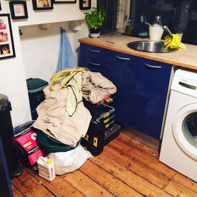 Boiler replacement happened on Tuesday and Wednesday. Which meant that the cupboards either side of the washing machine and surfaces needed to be cleared on Monday night. Not pictured is everything piled up on the kitchen table! I got home on Wednesday to find the plumber having a nightmare and the news that I had no heating (not too much of a problem) or hot water (bigger problem). I do know that many, if not the majority, of the human race survives without regular access to running water, let alone hot running water and not having it for one night was a completely survivable, first world problem and once I had put the pants of perspective on, I was just grumbly about the amount of chaos that two workmen can do to one tiny, tidy flat! I kept walking into rooms and needing to re-arrange things or tidy up!