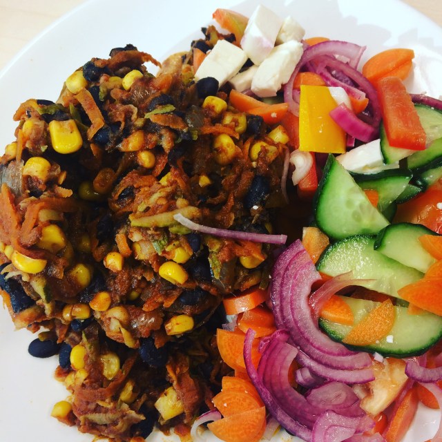 Breakfast on Wednesday wa s a repeat of Tuesday. Lunch was supposed to be a repeat of Tuesday with a smaller potato, except I forgot the taco filling part of lunch so it was a baked potato with salad and this is why you should always bring a back up salad!