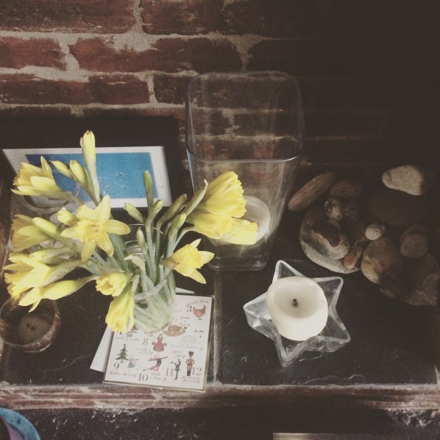 Fireplace Daffodils. 13 January. I’m quite taken with my fireplace.