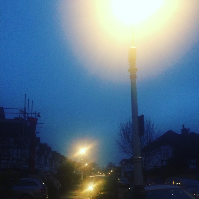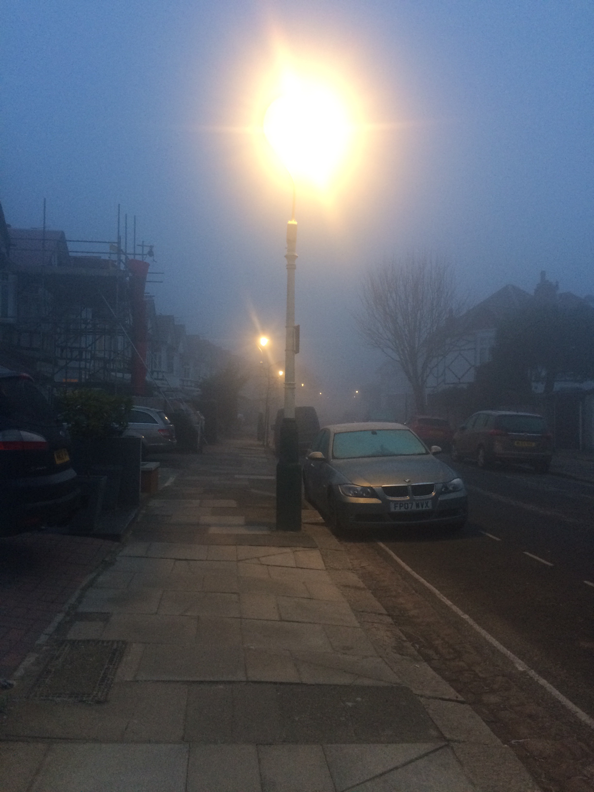 Foggy. 23 January. It was icy and foggy this week, I took a photo of the street every time I left for work!
