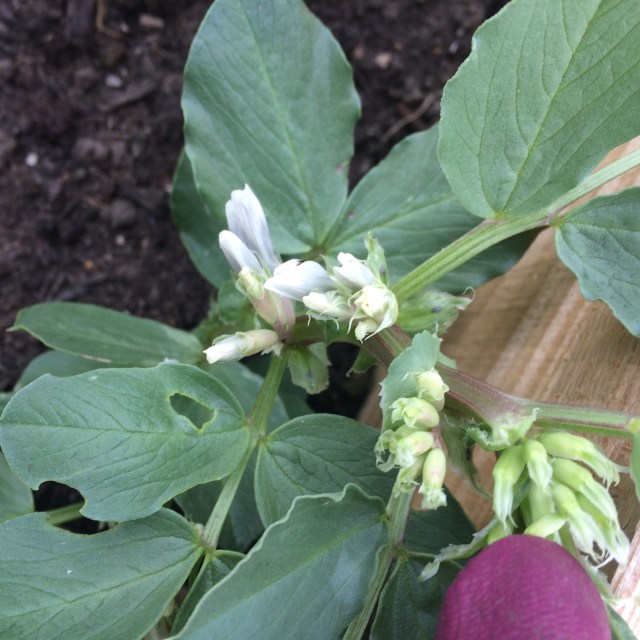 However, the potatoes are planted, I sowed some peas, spinach, raddishes, salad and beetroot. The broad beans have flowers…