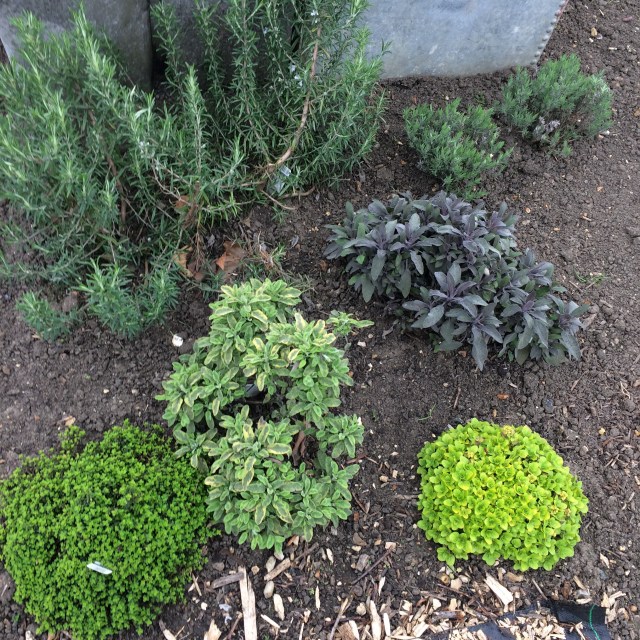 The herb bed has sprung into life and I have tiny flowers on my rosemary.