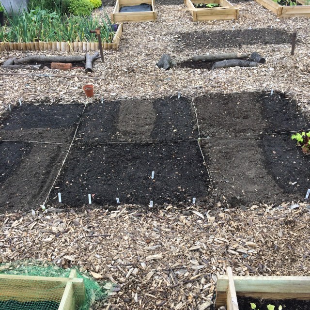 On Sunday, we started early. Ma tackled the grass on the edge of plot and weeded the rhubarb. I didn’t take a photo but I should have, she did an amazing job. I got the easier task of sowing things in big middle bed.More rocket, another row of lettuce, lambs lettuce, spinach, beetroot, nasturtiums, cosmos and stock. I have no idea if sowing flowers in the middle of a salad bed is a good idea but I’ve done it.