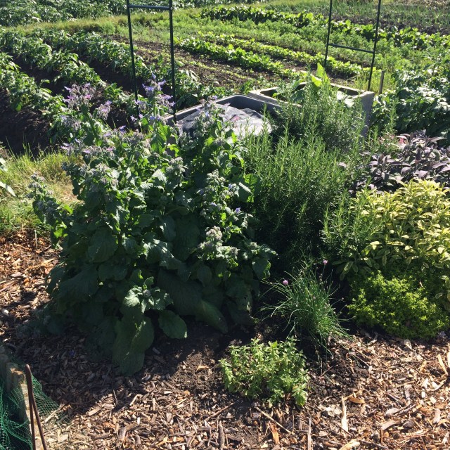 The only seeds that came up were the borage and they seemed very slow. I abandoned the parsley and decided to sow that in one of the little beds, where last year there had been dill (the dill is with the cucumbers this year) and I planted a lemon verbena (which may or may not survive the winter) in the middle of May.