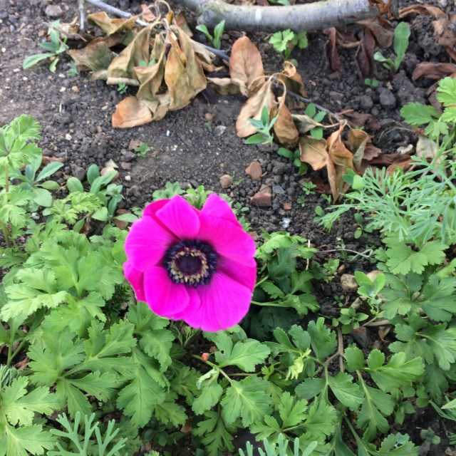 This was the first thing that I did, I wanted to remove a big branch so I did that and some very minor pruning because I didn’t want to shock it too much. I also got rid of the various bits and pieces that have been building up around the shed and tree, in preparation for the weeding that Ma was going to do. And admired my first anemone.