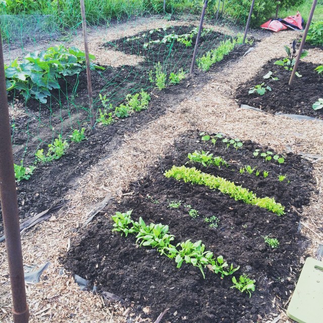 I’ve mostly been watering in the morning, it takes about 45 minutes because I planted such water loving plants (tomatoes, cucumbers, peas and squash) and there’s just more going on this year. This time last year, I had two courgette beds, peas, two tomato beds, a salad bed and a bed of french beans. (this photo was taken on 26 June 2016)